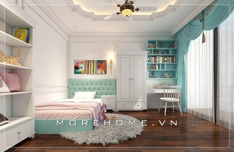 Nội thất phòng ngủ bé gái hiện đại với đồ nội thất thiết kế thông minh và tiện nghi