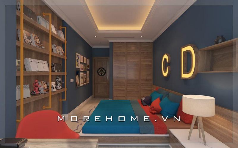 Nội thất phòng ngủ bé trai hiện đại, chất liệu màu nâu trầm mang lại cảm giác ấm cúng hơn cho phòng ngủ của con