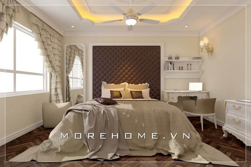 Thiết kế nội thất phòng ngủ Master theo phong cách tân cổ điển sang trọng cho chung cư cao cấp.
